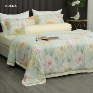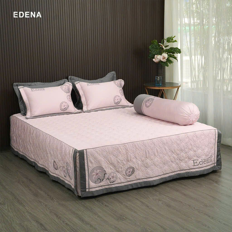 Bộ ra phủ Edena được chần đều tấm phủ bằng kỹ thuật may chần hiện đại, giúp bề mặt luôn giữ phom đẹp, không xô lệch, không nhăn nhàu trong quá trình sử dụng. Lớp bông mỏng bên trong tạo độ phồng nhẹ, tăng thêm độ êm ái và sang trọng cho chiếc giường.