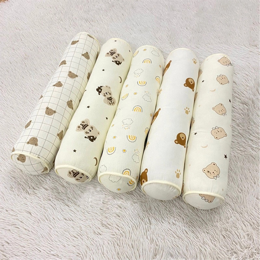 Phần áo gối được may bằng vải cotton hoặc thun lạnh co giãn, thấm hút tốt, có thể tháo rời để giặt, giúp mẹ luôn giữ không gian ngủ của bé sạch sẽ và thơm tho.