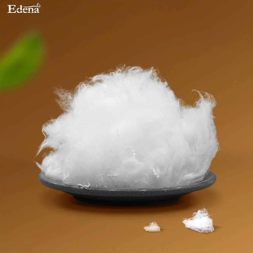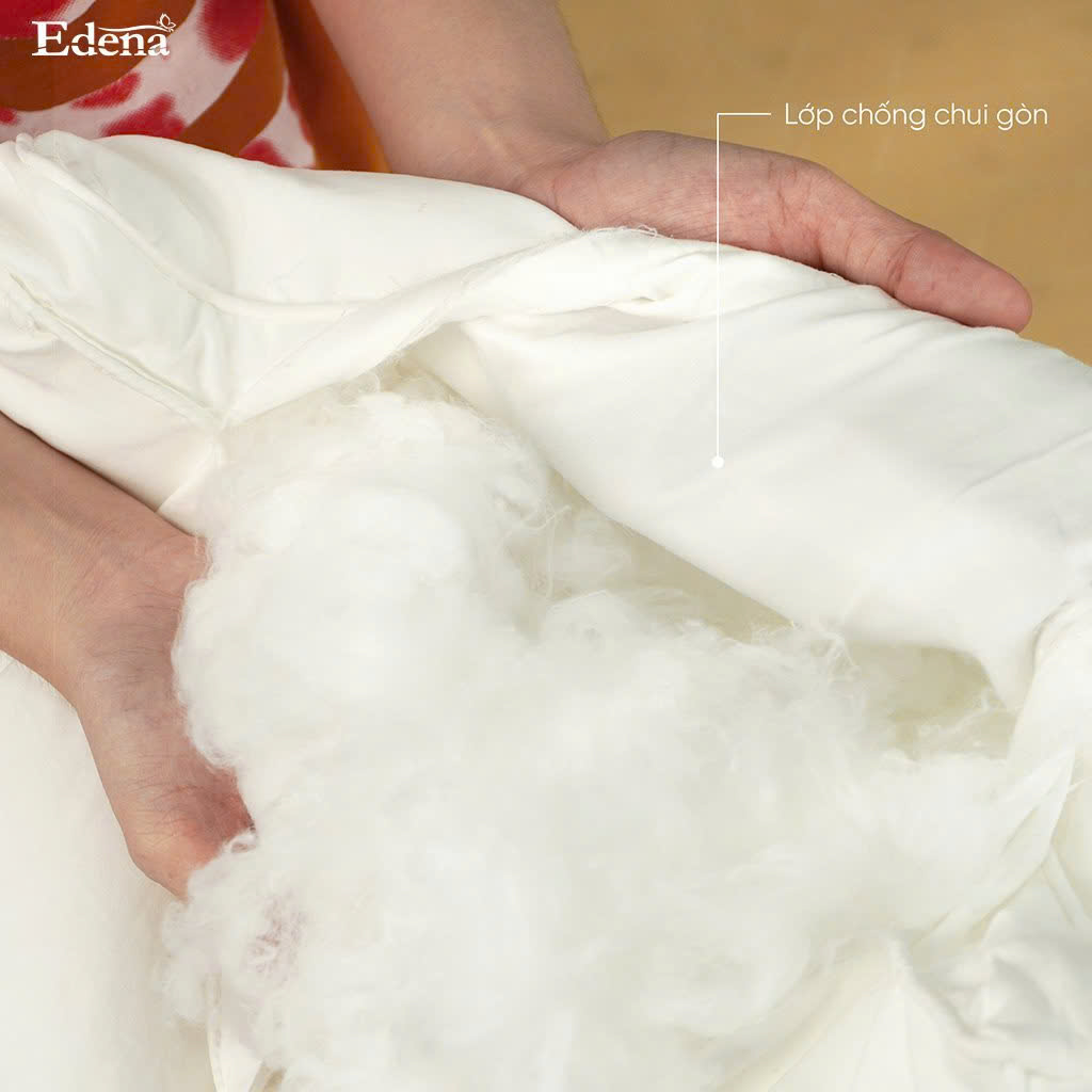 Ruột gối Edena được làm từ 100% tơ tằm chọn lọc, trải qua quy trình xử lý khép kín để giữ nguyên cấu trúc sợi, đảm bảo tính đàn hồi, độ thoáng và độ sạch.