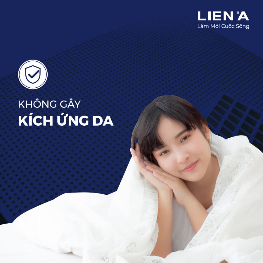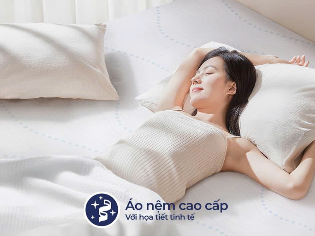 Lớp áo nệm sử dụng vải dệt 3D hiện đại, mát tay, không xù, bền màu và dễ tháo giặt. Logo Liên Á được thêu tinh tế như lời khẳng định đẳng cấp, tạo điểm nhấn cho không gian phòng ngủ.