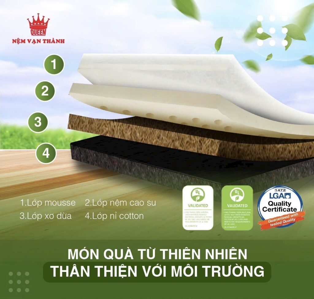 – Lớp mút cao su thiên nhiên: Tăng cường độ đàn hồi và hỗ trợ cột sống, đồng thời có khả năng thoáng khí tốt, giúp duy trì nhiệt độ lý tưởng cho giấc ngủ.