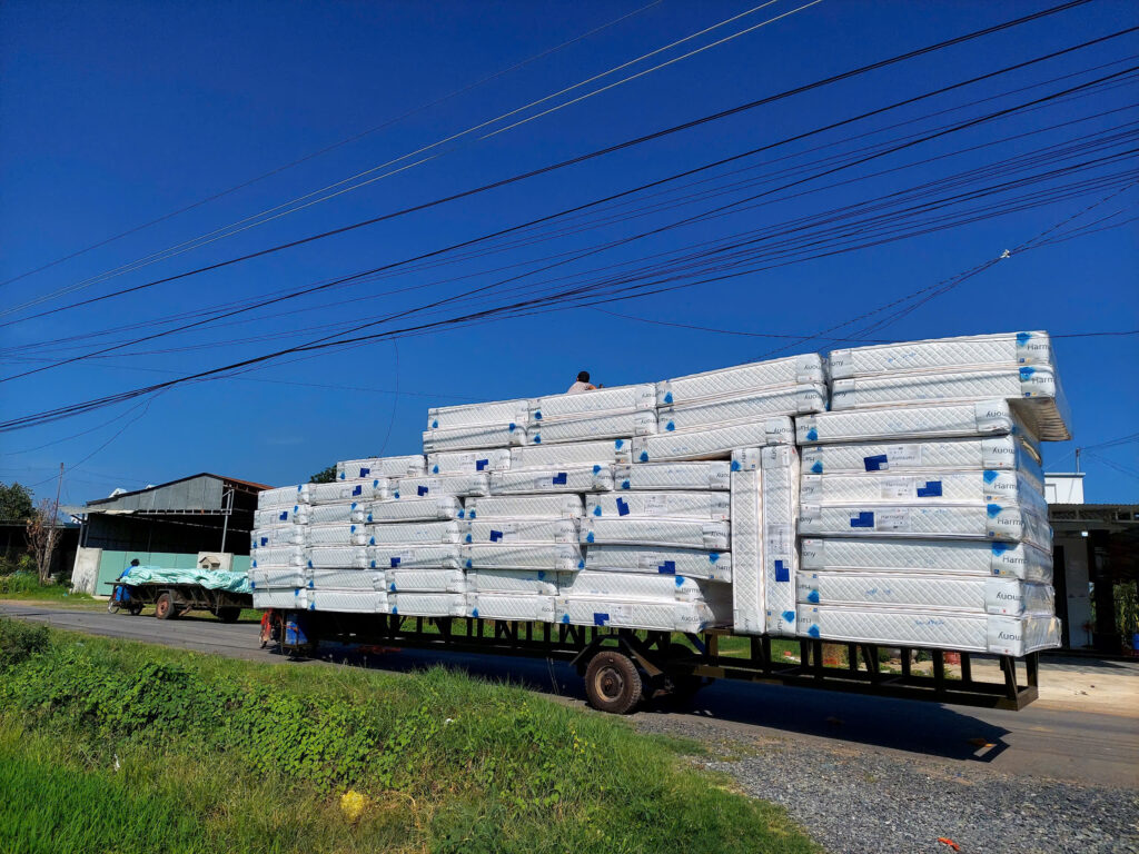 – Kiểm tra chất lượng: Kiểm tra kỹ lớp vải bọc ngoài, độ phẳng của nệm và khả năng đàn hồi của hệ thống lò xo.